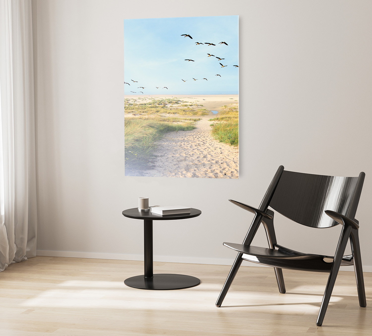 Le verre est LE matériau haut de gamme par excellence. Il ne subira aucune altération de longues années durant. C’est le matériau idéal pour obtenir une sublime brillance et profondeur de l’image. Nos techniques d’impression garantissent une restitution des détails saisissantes pour une image à couper le souffle.
